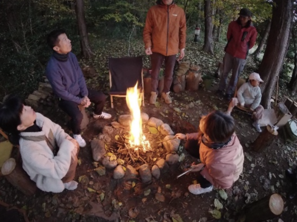 【「いちばの森」での焚き火、薪割り、森カフェ体験】